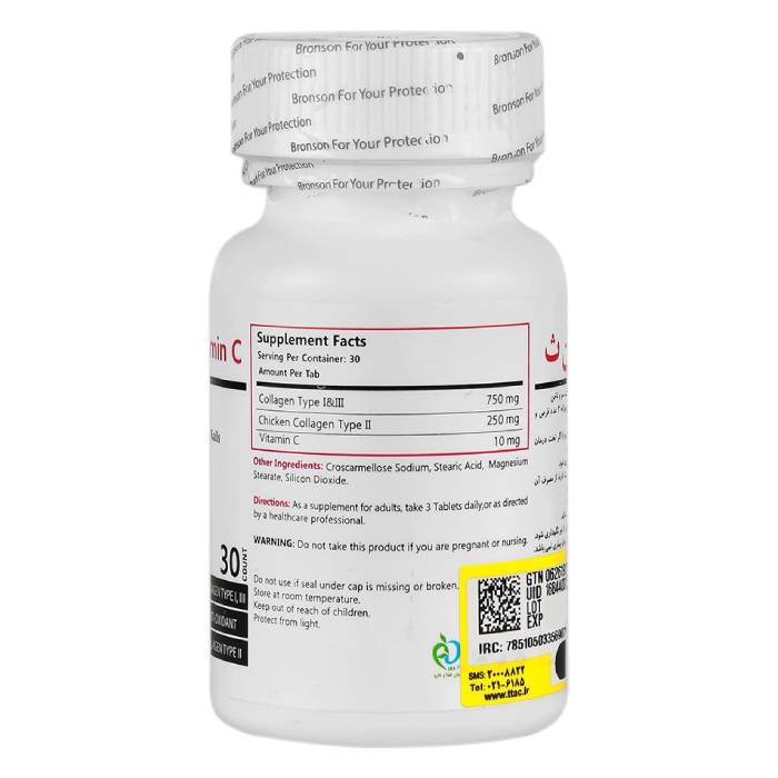 قرص کلاژن ویتامین ث برونسون مکمل غذایی است که با سه تیپ کلاژن و ویتامین ث طراحی شده تا به حفظ سلامت پوست ، مو ، ناخن و مفاصل کمک کند .